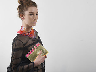 Limited edition laser cut acrylic elasticated bracelet with brass detail.