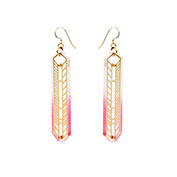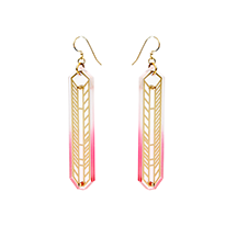 Limited edition hand dyed acrylic earrings with etched brass detail and gold earring hooks.