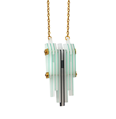 Limited edition laser cut acrylic necklace with brass detail and gold clasps.